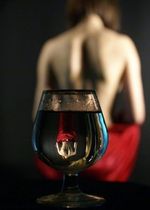 V sklence vína dáma v rudém