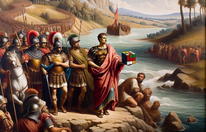 Před několika dny jsem k básni Výchozí bod  hledal obrázek a kromě toho, který jsem nakonec použil, jsem našel i tento. Překročit Rubikon můžeme různými způsoby, Caesar zvolil ten, který mu ale štěstí nepřinesl… 😅