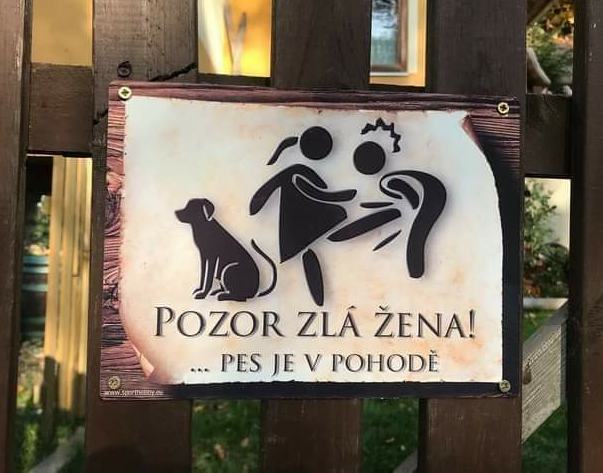 Cedule Pozor zlý pes! dává možnost od neuvážené návštěvy upustit. Pokud je ovšem pes v podezřelé pohodě, situace se může opravdu nebezpečně zvrtnout... 😅
