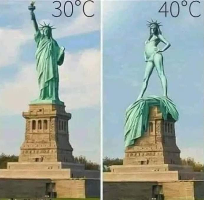 Slyšeli jste to už? Jsou prý taková vedra, že se i Socha svobody musela svléct. No, je to sice zajímavé, ale spíš bych se šel kouknout na nuda pláž... 😊