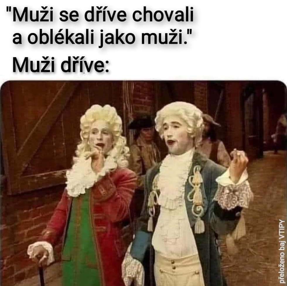 Jo, kdysi byli muži opravdoví muži, teda… pokud zrovna nebyli v krásném procesu proměny identity vlivem módy… 😂