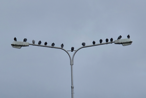 Tahle fotka se fakt povedla, kluci na lampě na mě čekali seřazení podle hodnosti a holubí etikety… 😉🕊️