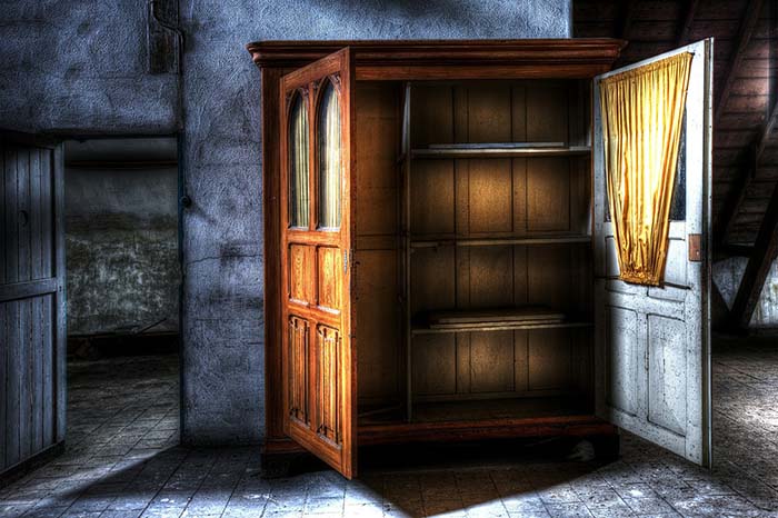 jen prach v skříni bez ramínka.