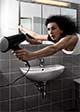 vzlétla v šoku nad vanu,